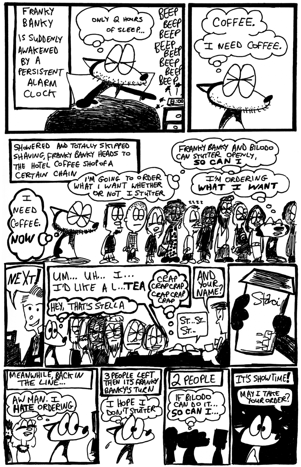 The stuttering conference continues in this second part of the trilogy named after our stuttering protagonist. It's an eventful day that begins with Franky Banky unintentionally causing mayhem by simply giving a fake name for his coffee order. Then a riot breaks out as he presents stuttering myths as fact in the wrong workshop. And if all that wasn't enough, Franky Banky deals with a bathroom emergency and almost gets eaten by a tiger!
